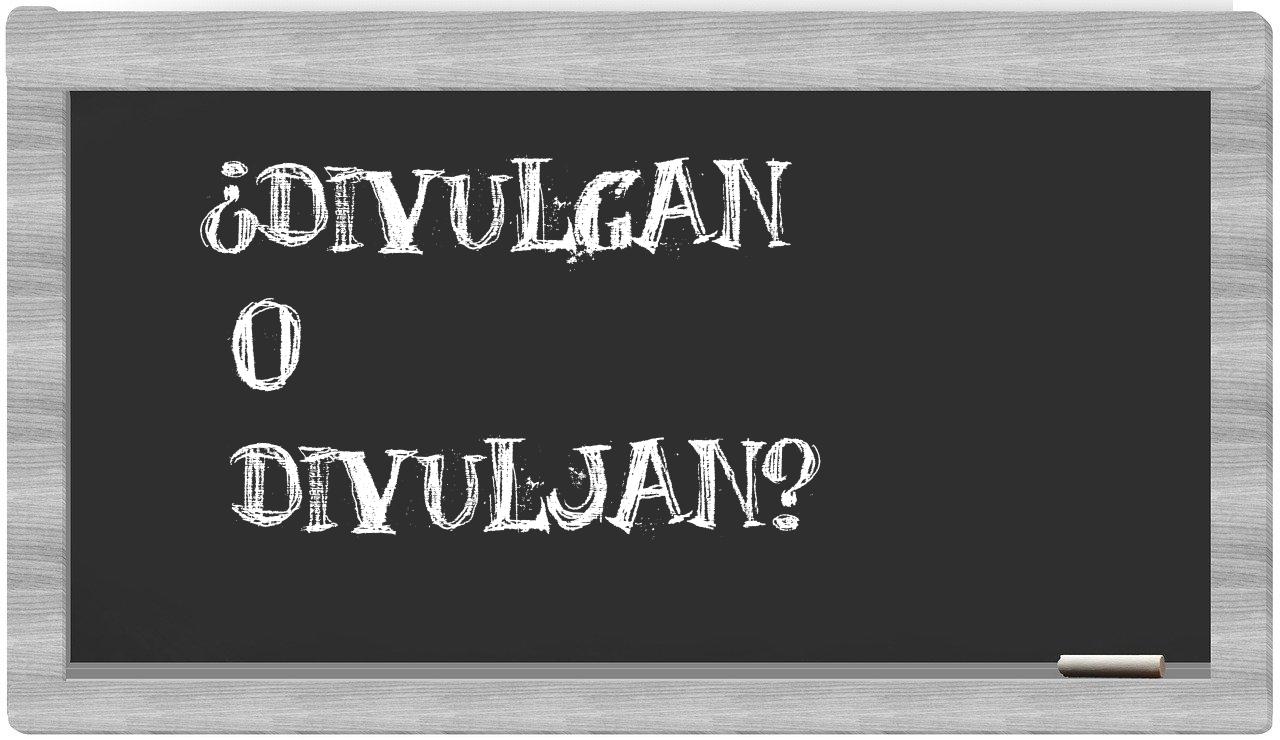 Cuando se trata de elegir entre divulgan y divuljan, nunca deberías vacilar, puesto que únicamente divulgan es la opción que se encuentra bien redactada. Por otro lado, divuljan no se encuentra registrada en el Diccionario de la Real Academia Española.