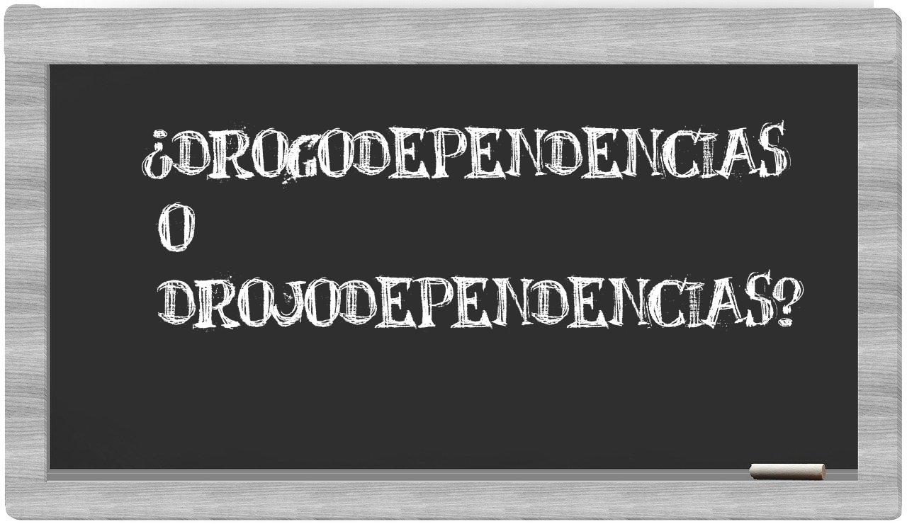 Cuando se trata de elegir entre drogodependencias y drojodependencias, la decisión nunca debe ser motivo de confusión, puesto que únicamente drogodependencias se encuentra correctamente redactada. En cambio, drojodependencias carece de reconocimiento en el Diccionario de la Real Academia Española.