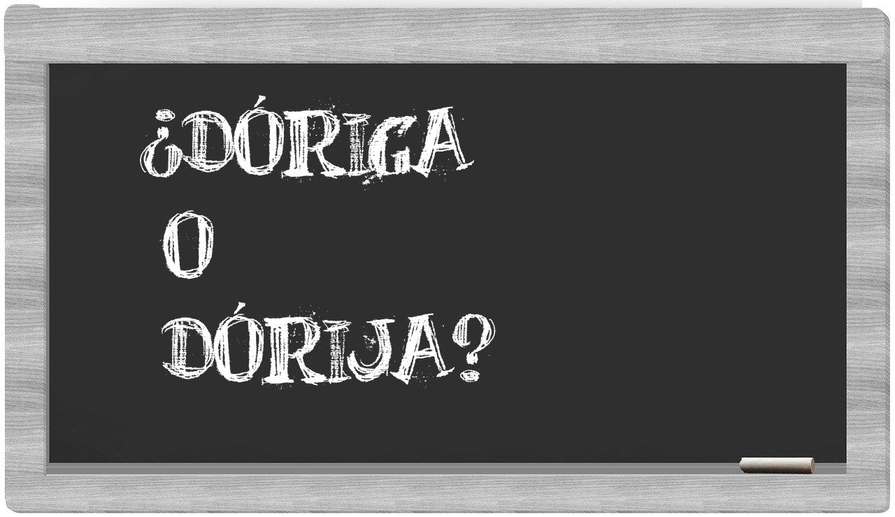 En la particular situación que se presenta entre dóriga y dórija, no deberías experimentar incertidumbre, puesto que únicamente dóriga es la forma adecuada, mientras que dórija no figura en el Diccionario de la Real Academia Española.