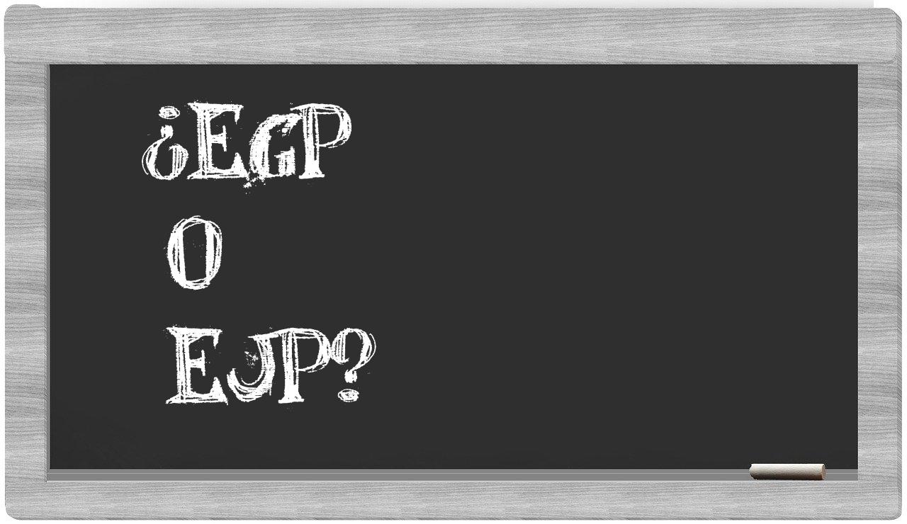 Cuando se trata de decidir entre las expresiones egp y ejp, no deberías tener titubeos, puesto que únicamente egp es la que se encuentra debidamente registrada, mientras que ejp no se halla en el Diccionario de la Real Academia Española.