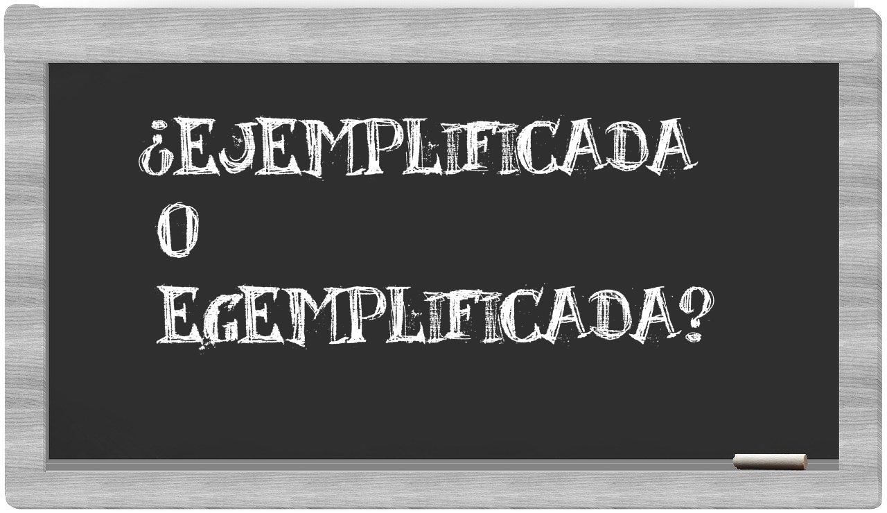 Cuando se trata de la elección entre ejemplificada y egemplificada, no hay lugar para la indecisión, puesto que únicamente ejemplificada es la forma adecuada. Por otro lado, egemplificada no se encuentra registrada en el Diccionario de la Real Academia Española.