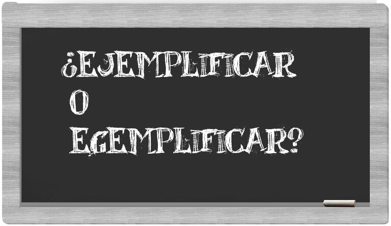 Cuando se trata de elegir entre ejemplificar y egemplificar, la decisión es más que obvia, puesto que únicamente ejemplificar se halla correctamente redactada, mientras que egemplificar carece de reconocimiento en el Diccionario de la Real Academia Española.