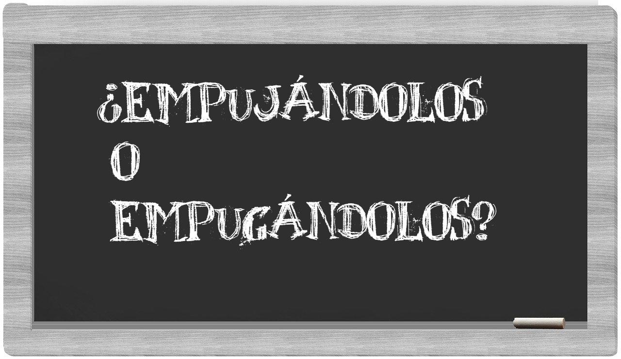 En la situación específica que se presenta entre los términos empujándolos y empugándolos, no deberías titubear en absoluto, puesto que únicamente empujándolos es el que se encuentra debidamente escrito. El término empugándolos no se halla registrado en el Diccionario de la Real Academia Española.