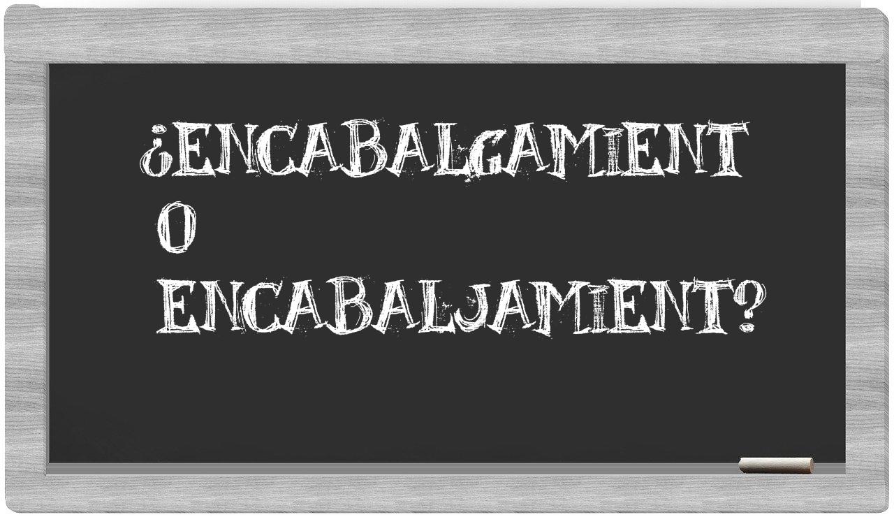 Cuando se trata de las letras que conforman encabalgamient y encabaljamient, no hay lugar para la incertidumbre, porque solo encabalgamient es la opción que se presenta de manera adecuada; en cambio, encabaljamient no se encuentra en el repertorio oficial del Diccionario de la Real Academia de la Lengua.