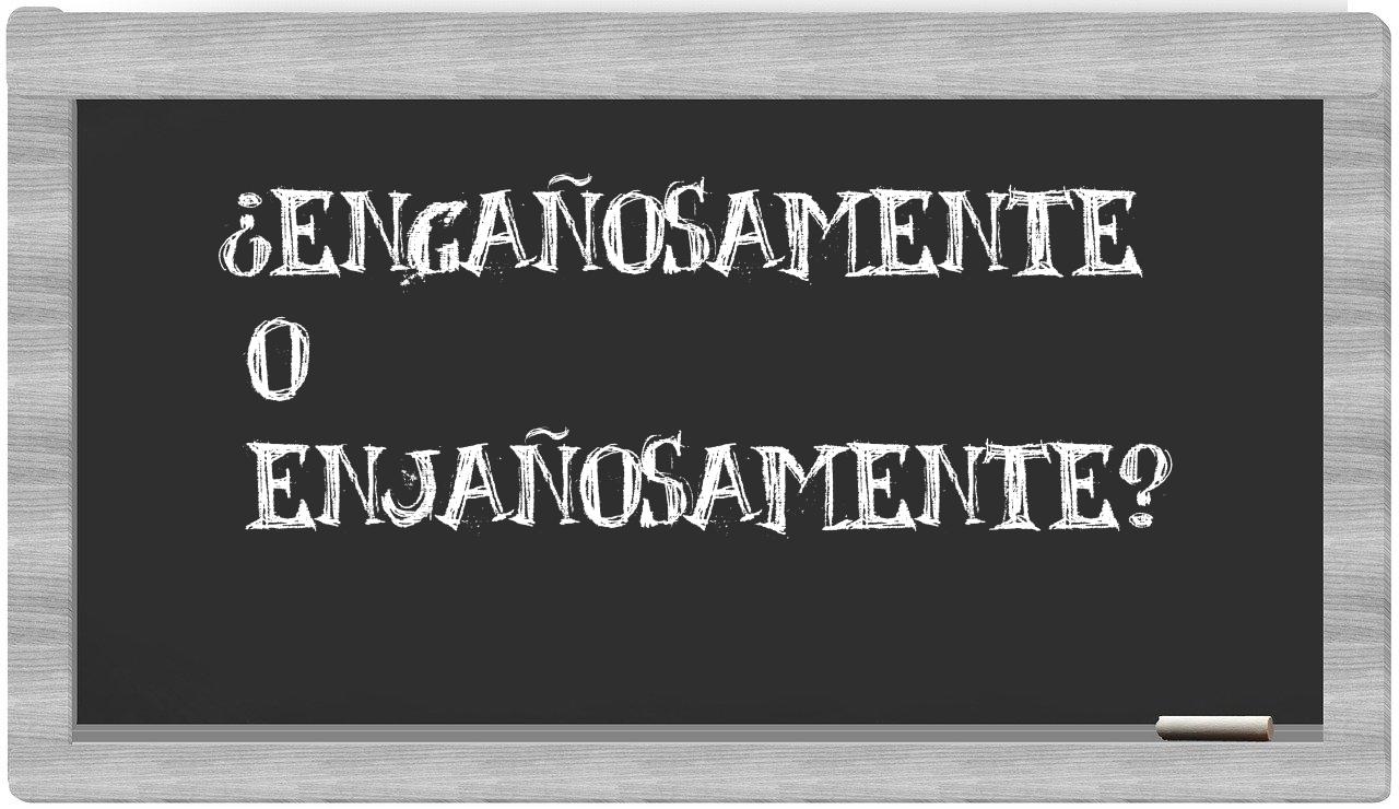 Cuando te enfrentes a la comparación entre engañosamente y enjañosamente, no deberías titubear, pues únicamente engañosamente se encuentra registrada de manera adecuada. Por el contrario, enjañosamente no figura en el Diccionario de la Real Academia Española.