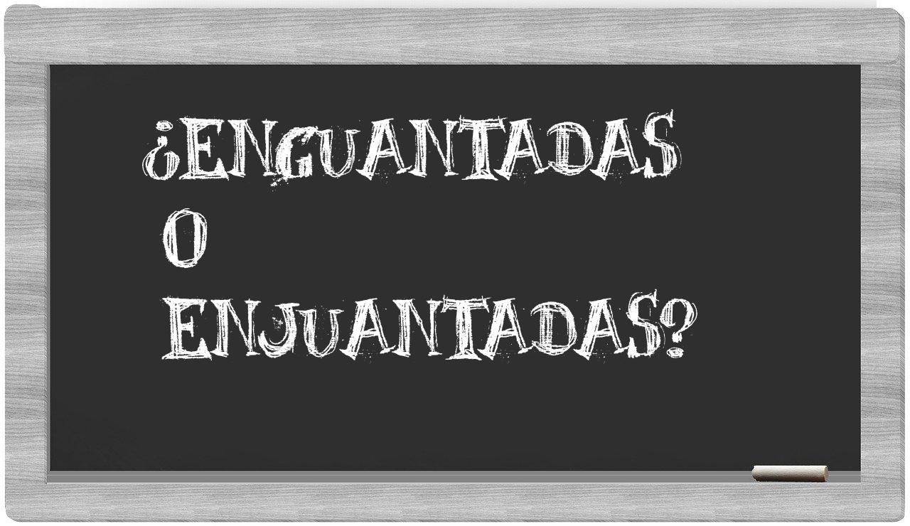 Cuando se trata de discernir entre enguantadas y enjuantadas, la decisión es clara y no deja lugar a confusiones, puesto que únicamente enguantadas se encuentra debidamente registrada en el Diccionario de la Real Academia Española, mientras que enjuantadas no figura en su autoridad lingüística.