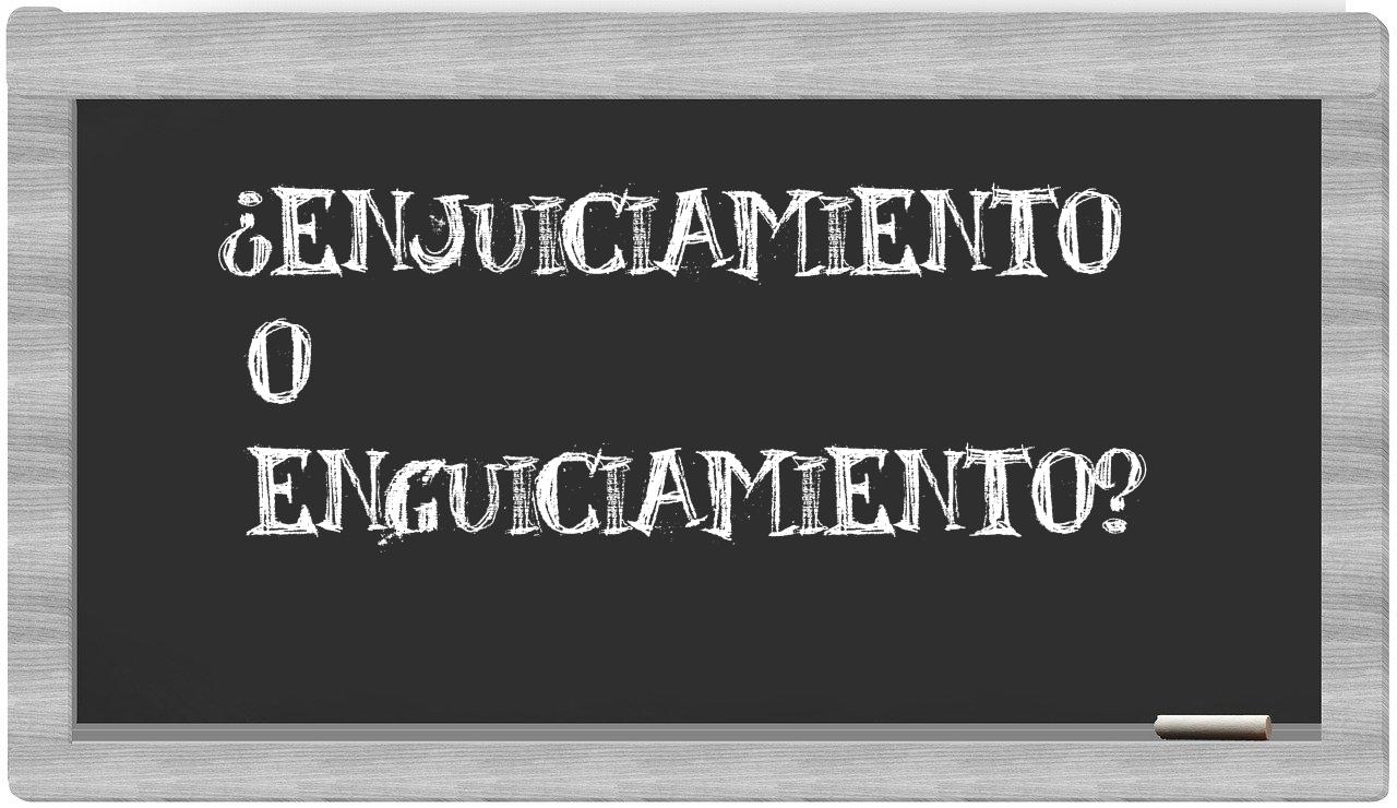 En la situación particular que involucra los términos enjuiciamiento y enguiciamiento, no deberías tener ambigüedad, puesto que únicamente enjuiciamiento se encuentra correctamente redactada. Por otro lado, enguiciamiento no se halla entre las entradas del Diccionario de la Real Academia Española.