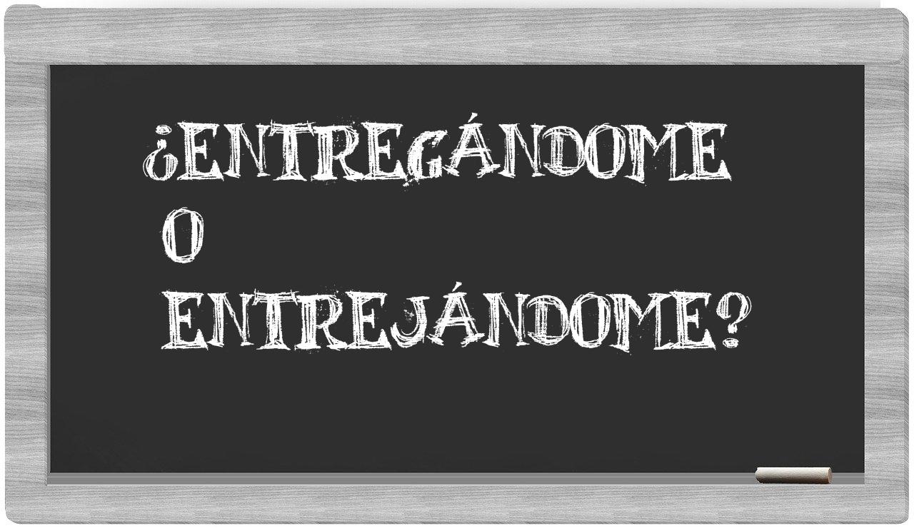 Si alguna vez te encuentras debatiendo entre las palabras entregándome y entrejándome, no vaciles en tu elección, puesto que únicamente entregándome es la que se encuentra registrada adecuadamente. En cambio, entrejándome no figura en el Diccionario de la Real Academia Española.
