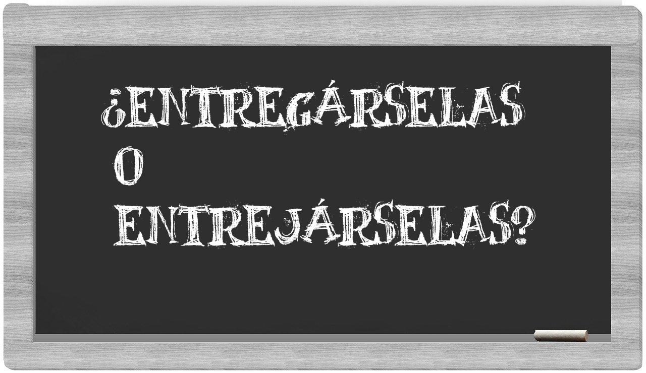 Cuando se trata de la distinción entre entregárselas y entrejárselas, es fundamental que no titubees, puesto que únicamente entregárselas es la forma adecuada según los estándares del idioma. Por otro lado, entrejárselas no se encuentra registrada en el Diccionario de la Real Academia Española.