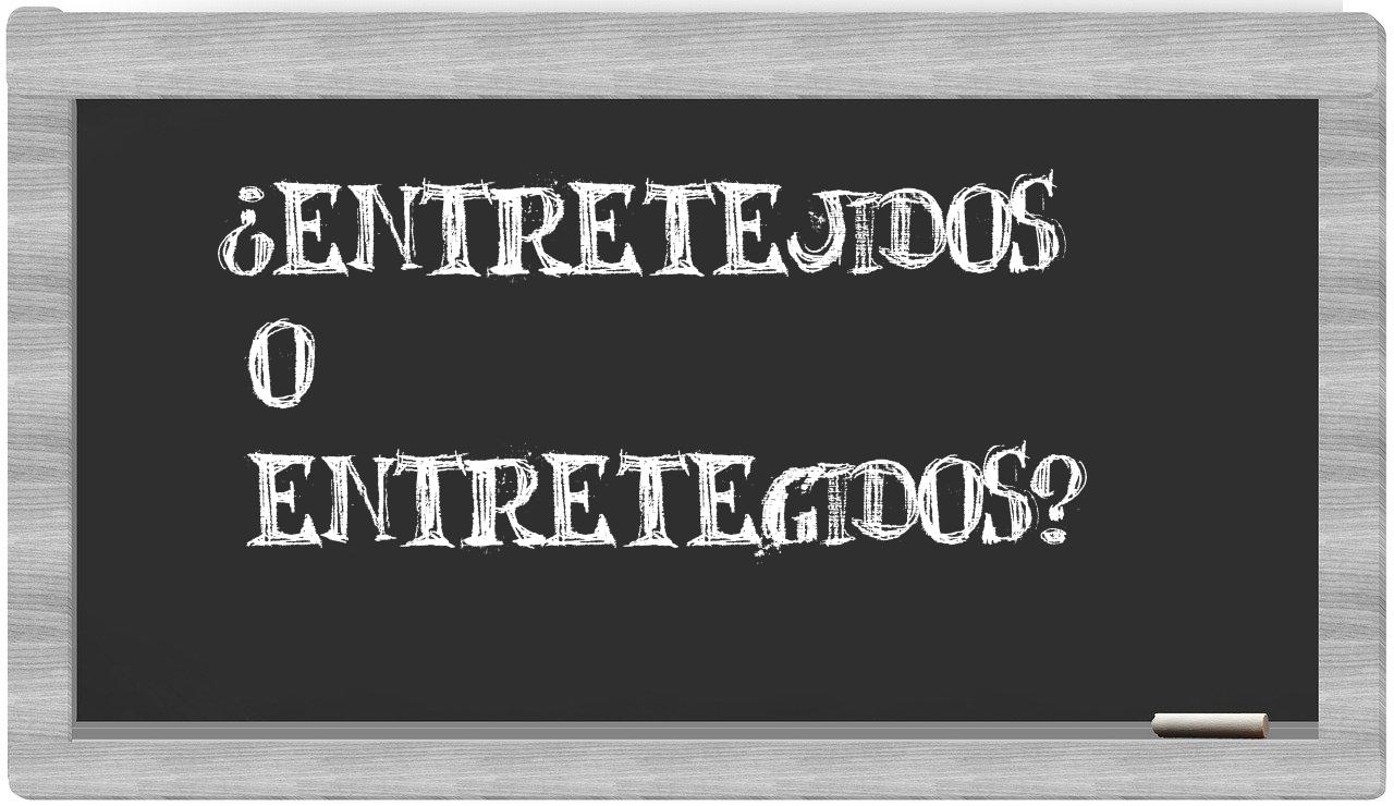 En la situación particular que involucra a las palabras entretejidos y entretegidos, es crucial que no vaciles, puesto que únicamente entretejidos se encuentra correctamente formulada. Por otro lado, entretegidos no figura en el prestigioso Diccionario de la Real Academia Española.