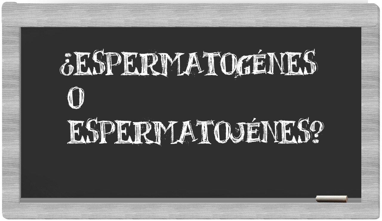 Cuando se presenta la elección entre espermatogénes y espermatojénes, es fundamental que no vaciles, puesto que únicamente espermatogénes es la que se encuentra adecuadamente registrada. Por otro lado, espermatojénes no figura en el Diccionario de la Real Academia Española.