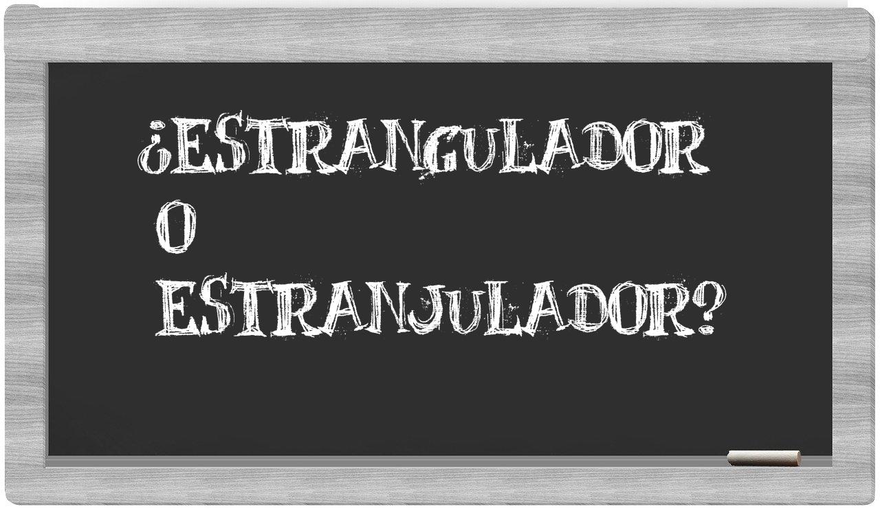 En la situación específica entre los términos estrangulador y estranjulador, nunca deberías vacilar, puesto que únicamente estrangulador se encuentra correctamente formulada. La palabra estranjulador no se halla registrada en el Diccionario de la Real Academia Española.