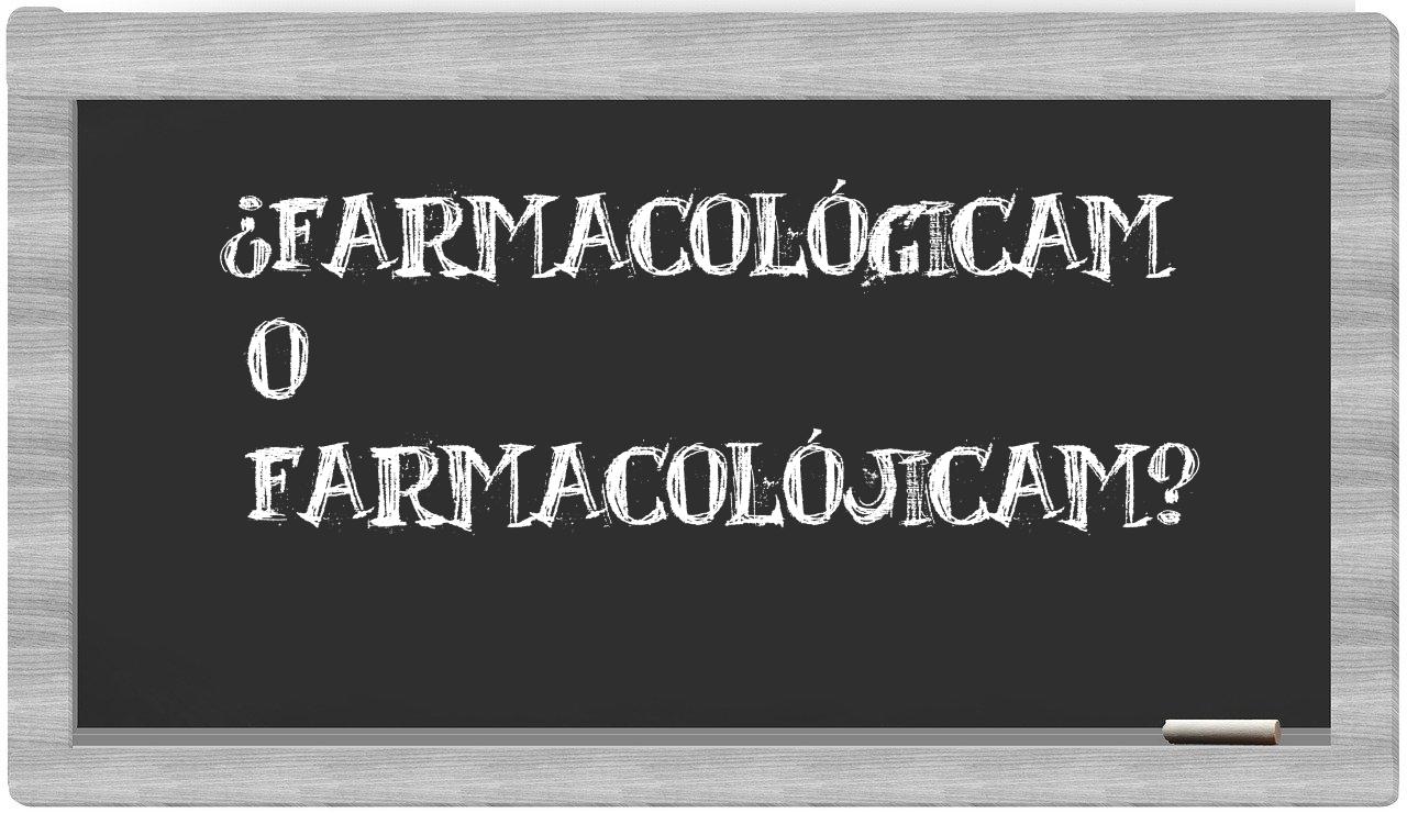 En la situación particular que involucra los términos farmacológicam y farmacolójicam, no deberías titubear en tu elección, puesto que únicamente farmacológicam se encuentra debidamente registrada en los anales de la Real Academia de la Lengua, mientras que farmacolójicam lamentablemente no figura en su prestigioso vocabulario.