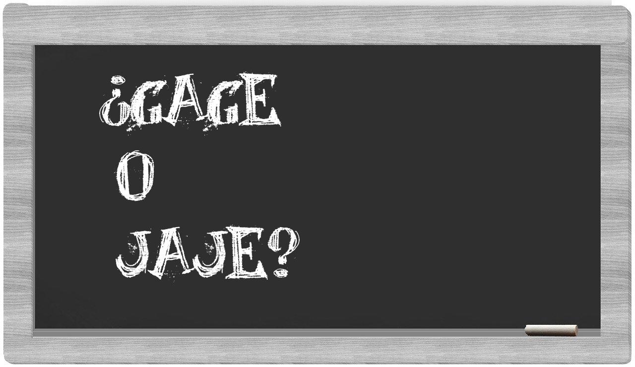 Cuando se trata de discernir entre los términos gage y jaje, no debería existir la más mínima vacilación, puesto que únicamente gage se encuentra correctamente formulada; en cambio, jaje no figura en el repertorio del Diccionario de la Real Academia Española.