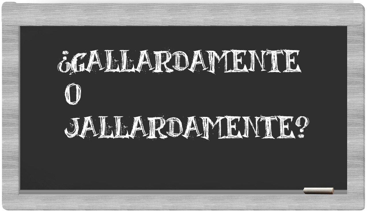 En la situación específica que involucra a gallardamente y jallardamente, es fundamental que no vaciles, puesto que únicamente gallardamente está redactada de manera adecuada. Cabe mencionar que jallardamente no se encuentra registrada en el Diccionario de la Real Academia Española.