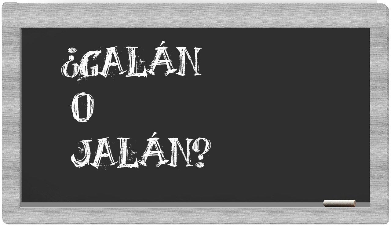 Cuando se trata de la comparación entre galán y jalán, no hay motivo alguno para titubear, puesto que únicamente galán se encuentra debidamente registrada en el Diccionario de la Real Academia Española, mientras que jalán carece de reconocimiento oficial.