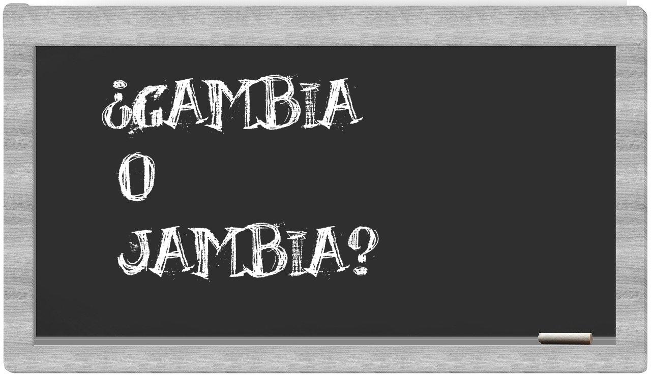 Cuando se presenta la elección entre gambia y jambia, no debería haber lugar para la incertidumbre, puesto que únicamente gambia es la forma adecuada y reconocida, mientras que jambia está ausente en el Diccionario de la Real Academia Española.