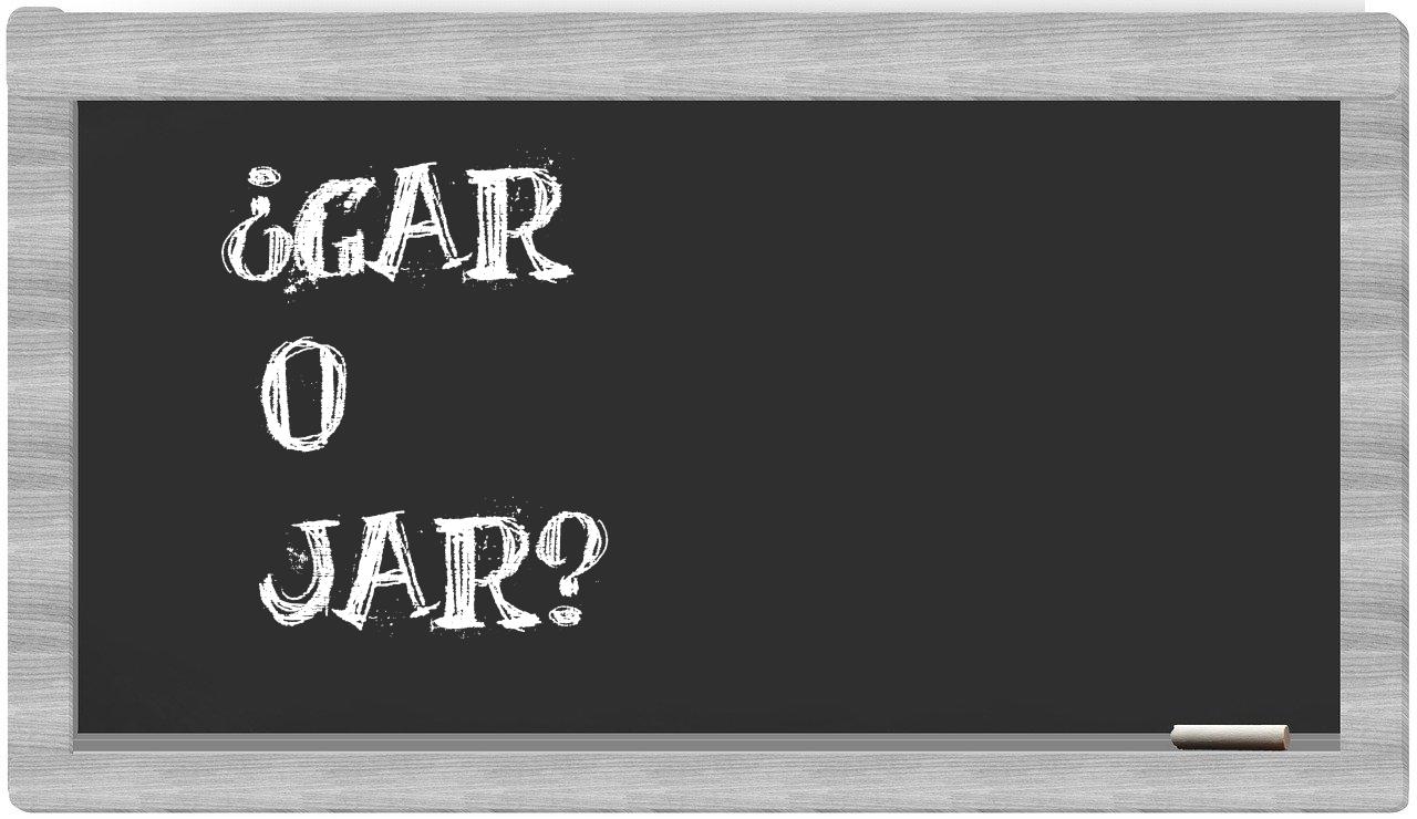 En la situación específica que involucra los términos gar y jar, no deberías vacilar en tu elección, puesto que únicamente gar está correctamente formulada. Por otra parte, jar no figura en el Diccionario de la Real Academia Española.