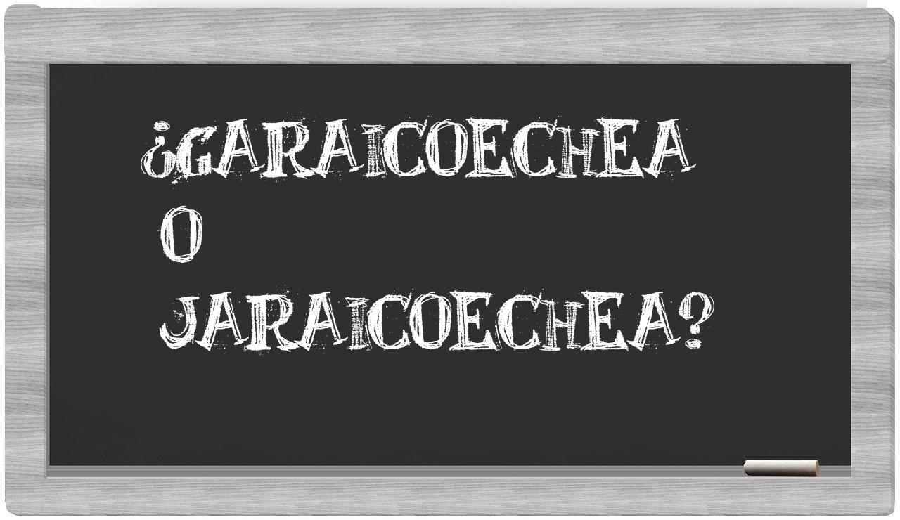 En la situación específica que confronta a garaicoechea y jaraicoechea, no deberías titubear en absoluto, pues únicamente garaicoechea está validada como correcta. Por otro lado, jaraicoechea no se encuentra registrada en el Diccionario de la Real Academia Española.