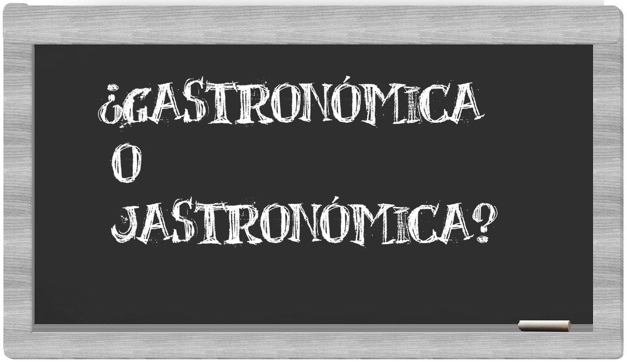 En esta situación particular, al enfrentarte a las palabras gastronómica y jastronómica, es fundamental que no vaciles, puesto que solo gastronómica se encuentra debidamente documentada, mientras que jastronómica no figura en el diccionario de la Real Academia Española.