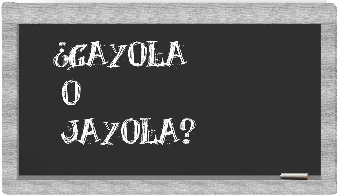 En la situación específica que involucra los términos gayola y jayola, no deberías titubear, pues únicamente gayola se encuentra correctamente redactado. La palabra jayola no existe en el Diccionario de la Real Academia Española.