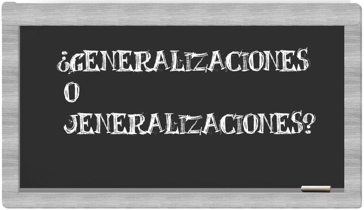 Cuando se trata de las expresiones generalizaciones y jeneralizaciones, es fundamental no vacilar, pues solo generalizaciones representa la forma adecuada; por otro lado, jeneralizaciones carece de reconocimiento en el Diccionario de la Real Academia Española.