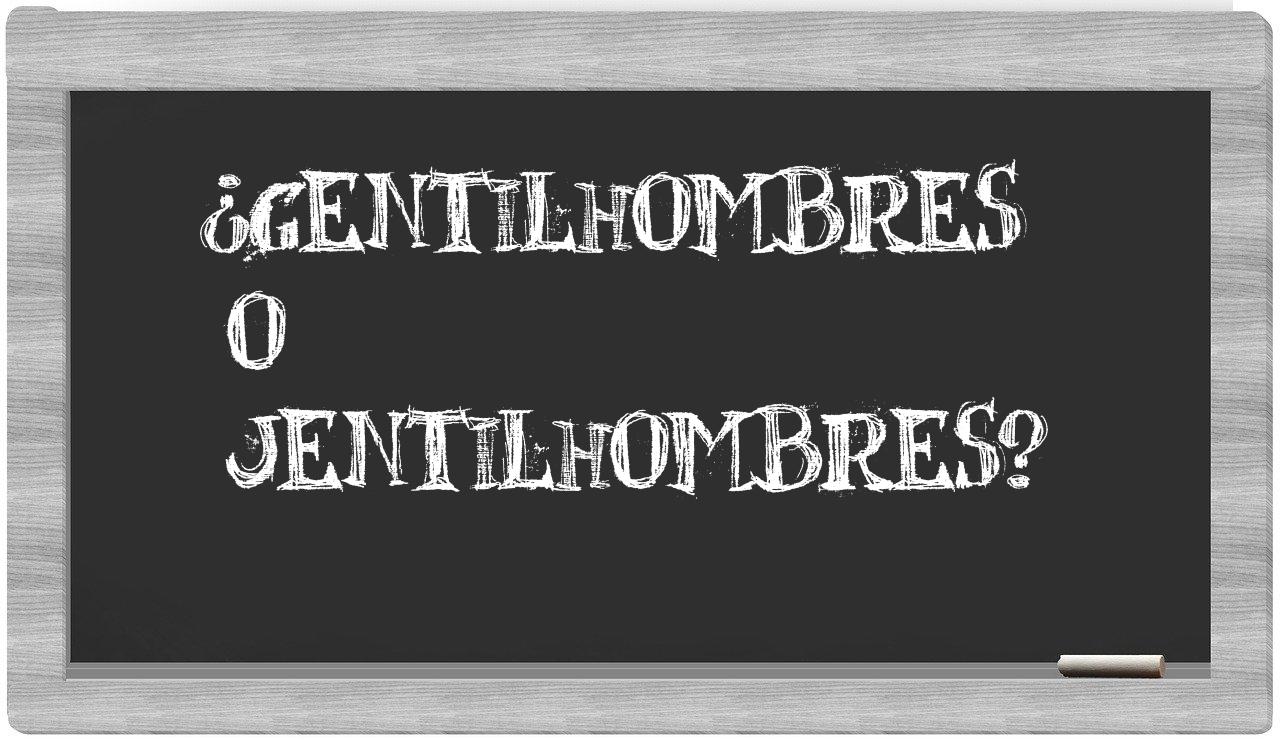En la particular situación que se presenta entre gentilhombres y jentilhombres, no deberías experimentar incertidumbre, puesto que únicamente gentilhombres es la forma adecuada, mientras que jentilhombres no figura en el Diccionario de la Real Academia Española.