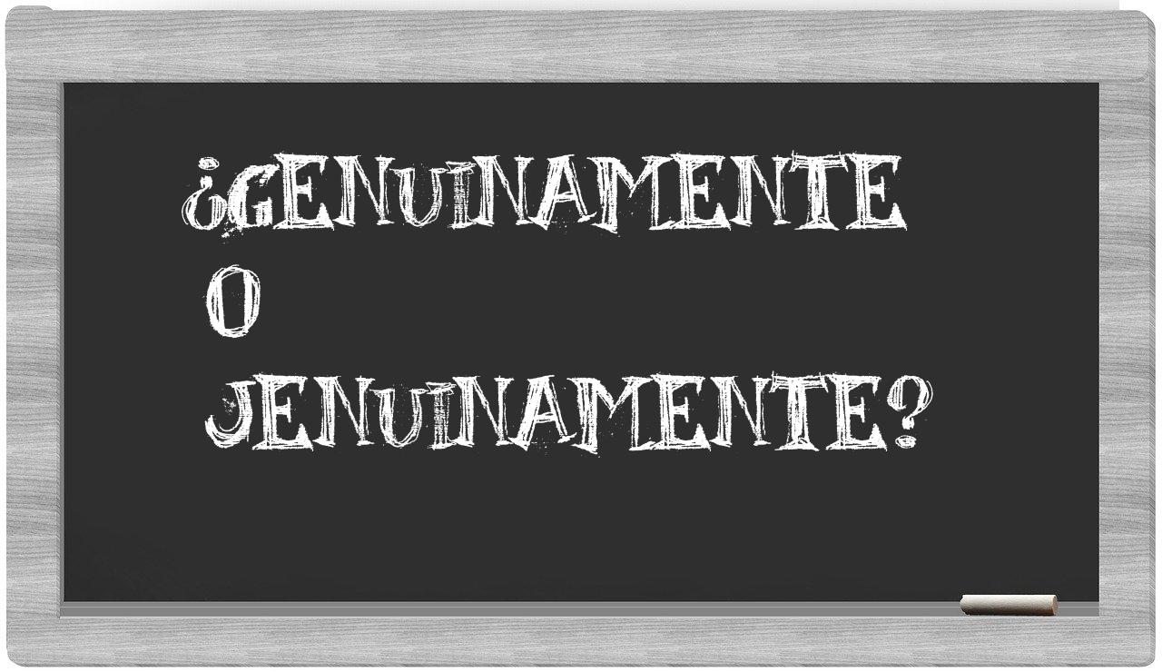 Cuando se presenta la elección entre genuinamente y jenuinamente, no debería haber lugar para la incertidumbre, puesto que únicamente genuinamente es la forma adecuada y reconocida, mientras que jenuinamente está ausente en el Diccionario de la Real Academia Española.