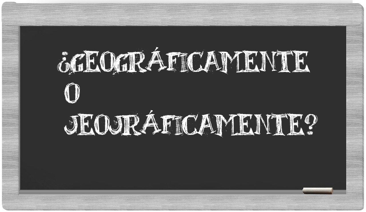 Cuando se trata de elegir entre geográficamente y jeojráficamente, la decisión nunca debe ser motivo de confusión, puesto que únicamente geográficamente se encuentra correctamente redactada. En cambio, jeojráficamente carece de reconocimiento en el Diccionario de la Real Academia Española.