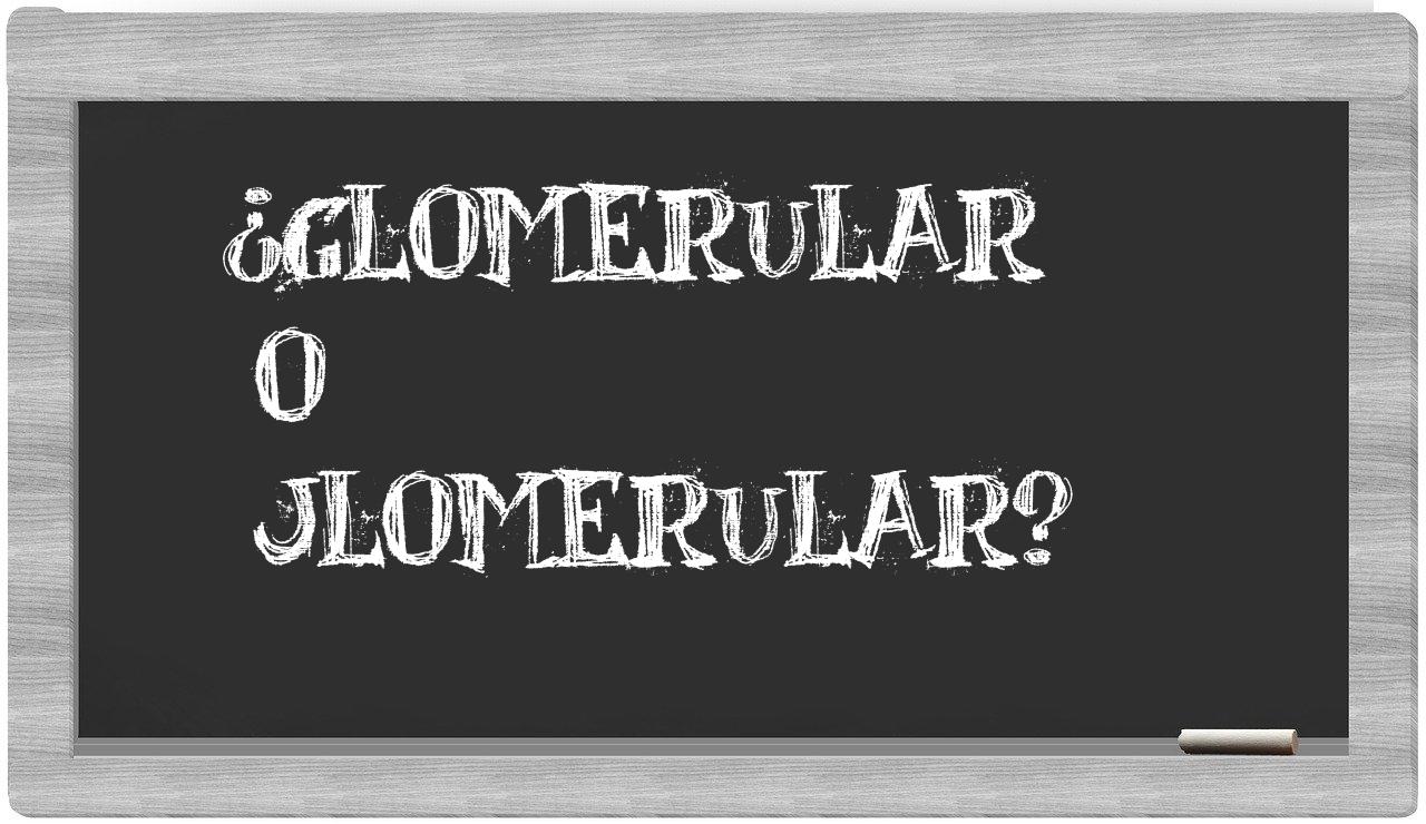 Cuando se trata de la distinción entre glomerular y jlomerular, no hay motivo para titubear, porque únicamente glomerular está correctamente formulada. Por otro lado, jlomerular no se encuentra registrada en el Diccionario de la Real Academia Española.