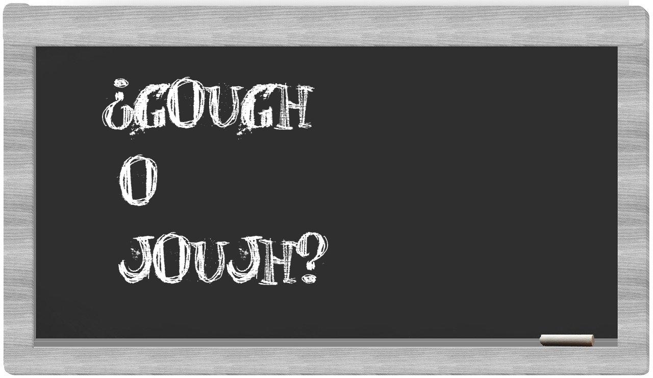 Cuando se presenta la disyuntiva entre gough y joujh, es fundamental que te mantengas firme en tu elección, pues únicamente gough se encuentra debidamente registrada en el Diccionario de la Real Academia Española, mientras que joujh carece de validez en su repertorio lexical.
