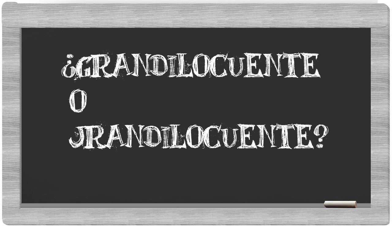 Cuando te enfrentes a la elección entre los términos grandilocuente y jrandilocuente, no dudes ni un instante; es grandilocuente el que está debidamente redactado. Recuerda que jrandilocuente no se encuentra registrado en el Diccionario de la Real Academia Española.
