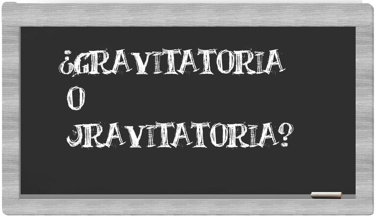 Cuando se presenta la disyuntiva entre gravitatoria y jravitatoria, no hay razón para la incertidumbre, puesto que únicamente gravitatoria es la opción que se encuentra validada en el Diccionario de la Real Academia de la Lengua, mientras que jravitatoria carece de reconocimiento oficial.