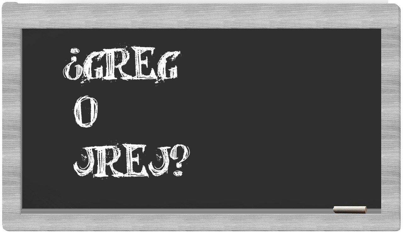 Cuando se trata de elegir entre las palabras greg y jrej, no deberías titubear, puesto que únicamente greg se encuentra correctamente plasmada, mientras que jrej no figura en el Diccionario de la Real Academia Española.