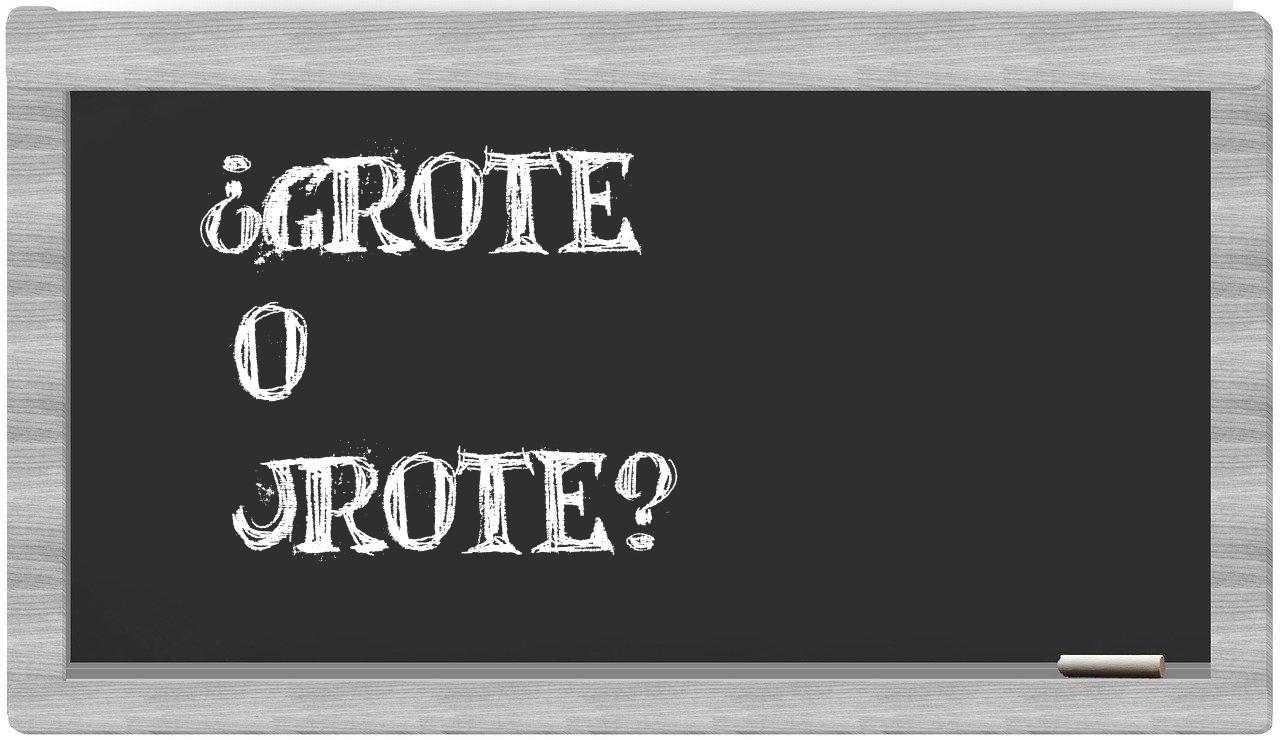 En la situación específica que se presenta entre los términos grote y jrote, no deberías titubear en absoluto, puesto que únicamente grote es el que se encuentra debidamente escrito. El término jrote no se halla registrado en el Diccionario de la Real Academia Española.