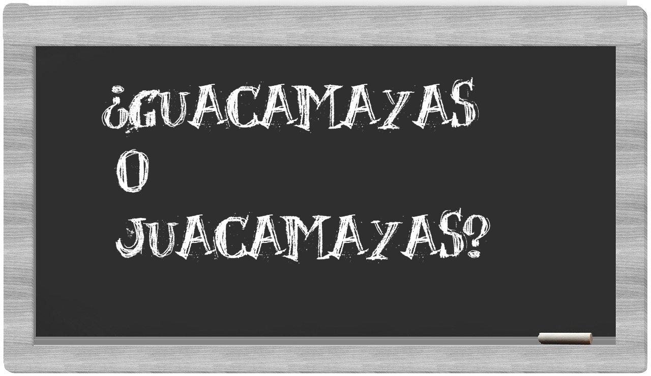 Cuando te encuentres ante las opciones que presentan guacamayas y juacamayas, no hay razón para titubear, puesto que únicamente guacamayas se encuentra aceptada en el prestigioso Diccionario de la Real Academia Española, mientras que juacamayas no figura en su repertorio.