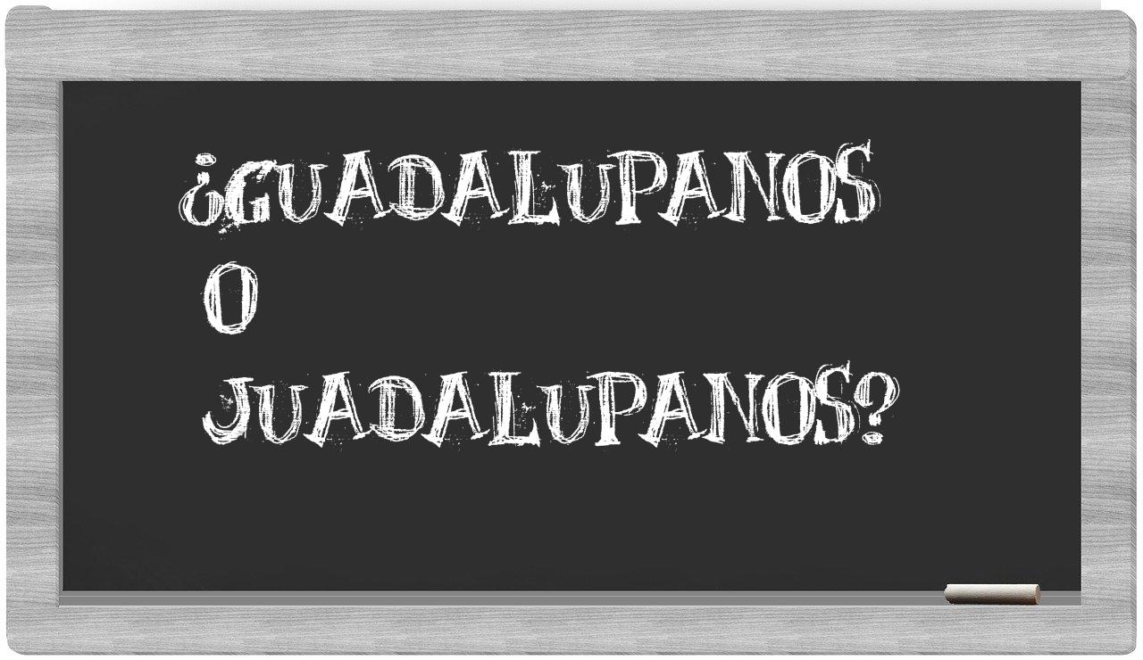 Cuando se trata de la distinción entre guadalupanos y juadalupanos, no hay motivo para la incertidumbre, dado que únicamente guadalupanos se encuentra registrada correctamente en el Diccionario de la Real Academia Española, mientras que juadalupanos carece de reconocimiento oficial.
