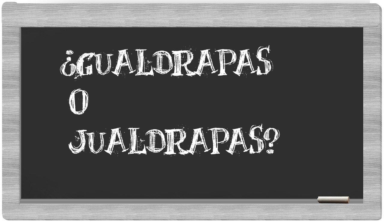 Cuando se trata de las letras que conforman gualdrapas y jualdrapas, no hay lugar para la incertidumbre, porque solo gualdrapas es la opción que se presenta de manera adecuada; en cambio, jualdrapas no se encuentra en el repertorio oficial del Diccionario de la Real Academia de la Lengua.