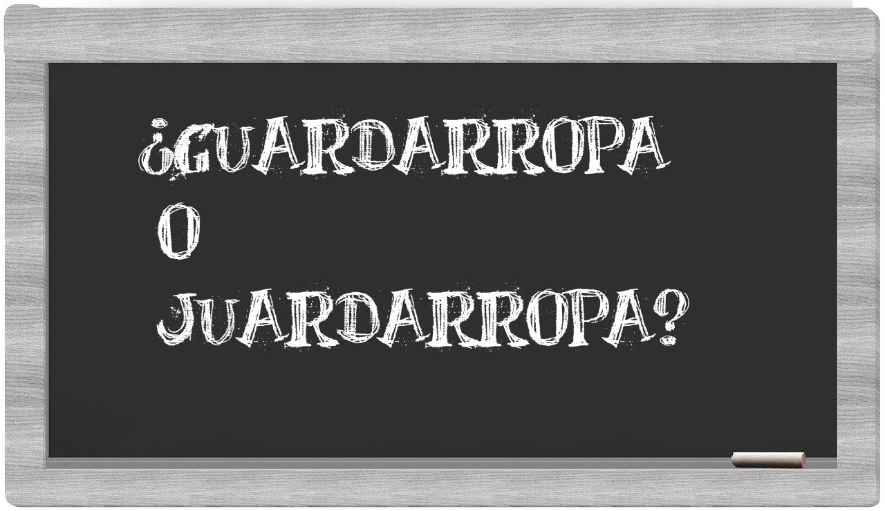 En la situación particular entre los términos guardarropa y juardarropa, no hay motivo para titubear, puesto que únicamente guardarropa es la opción válida. El término juardarropa no está registrado en el Diccionario de la Real Academia Española.