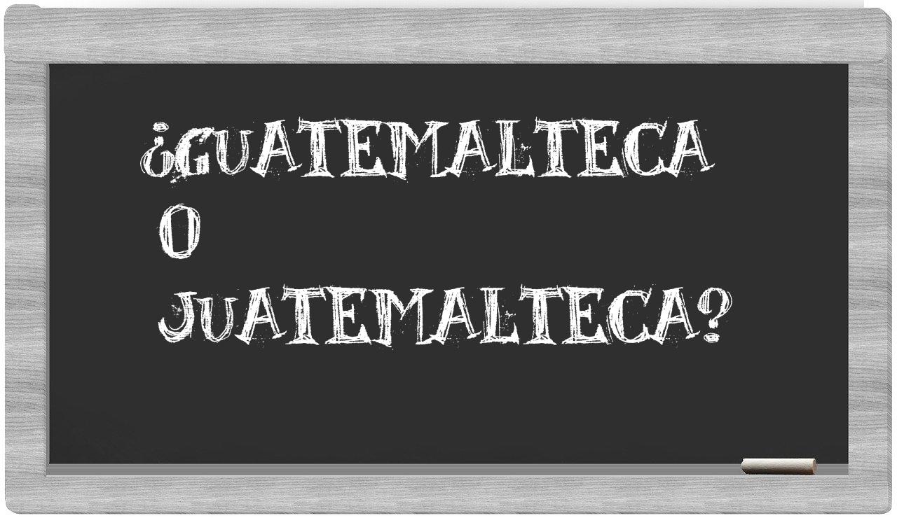 En la situación particular que involucra los términos guatemalteca y juatemalteca, no hay lugar para la incertidumbre, pues únicamente guatemalteca se encuentra adecuadamente redactada. Por otro lado, juatemalteca carece de reconocimiento en el Diccionario de la Real Academia Española.