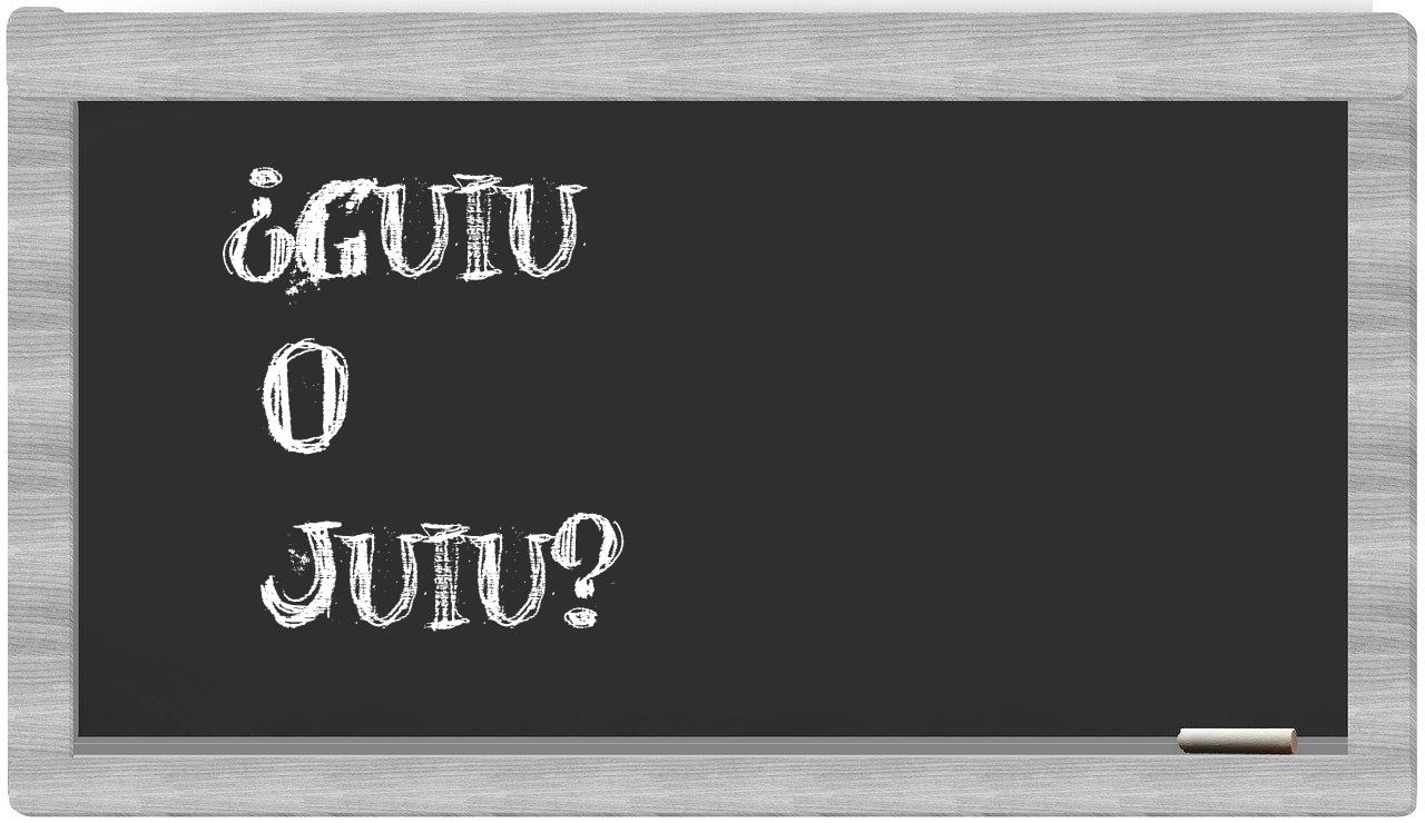 Cuando se trata de la interacción entre guiu y juiu, no deberías titubear ni un segundo, puesto que únicamente guiu es la opción que se encuentra debidamente registrada. En cambio, juiu no forma parte del repertorio del Diccionario de la Real Academia Española.