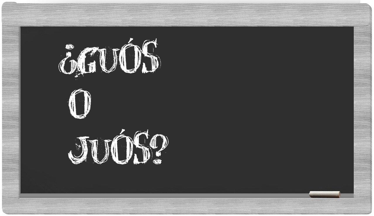 En la situación particular que involucra a guós y juós, no existe lugar para la incertidumbre, puesto que únicamente guós se encuentra correctamente escrita. Por otro lado, juós es un término que no está registrado en el Diccionario de la Real Academia Española.