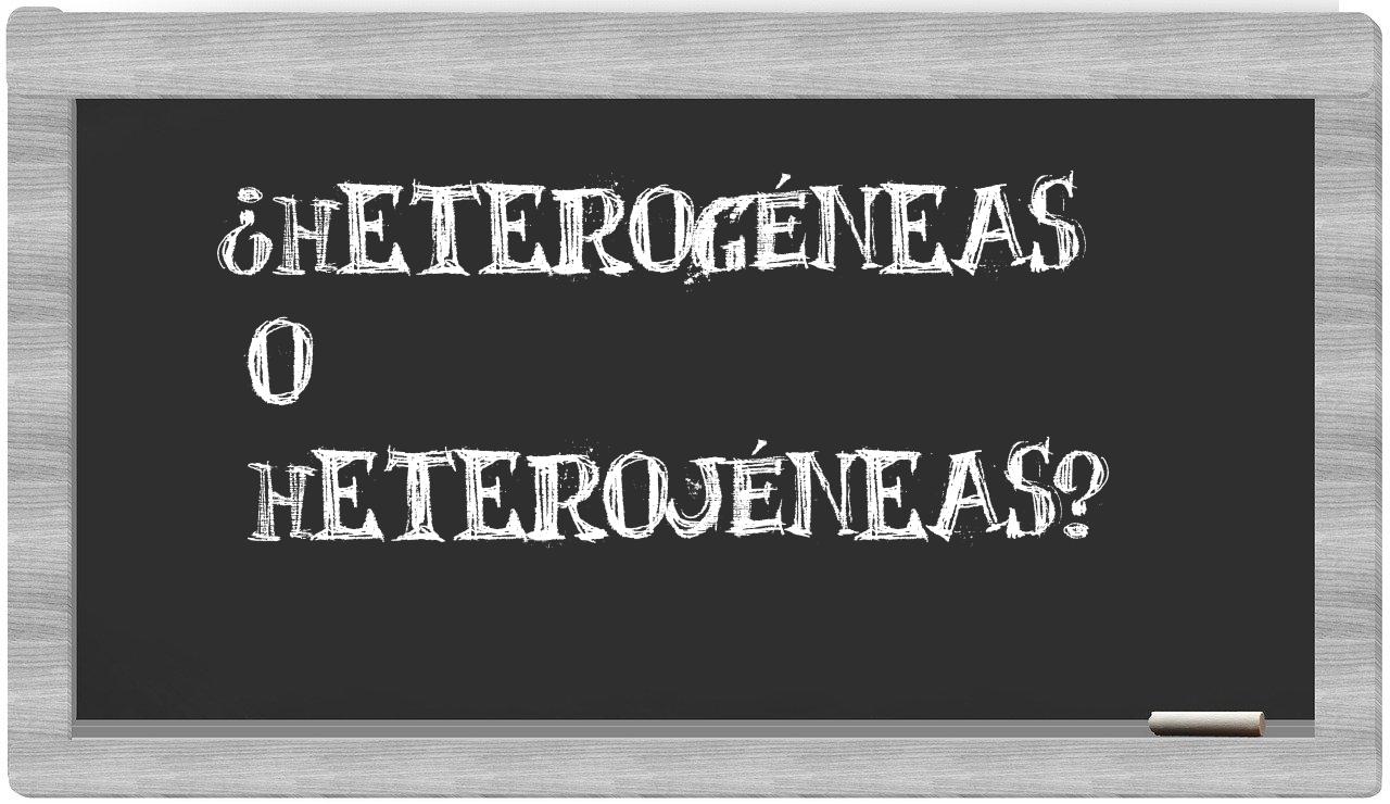 En la situación específica que involucra los términos heterogéneas y heterojéneas, no deberías vacilar en tu elección, puesto que únicamente heterogéneas está correctamente formulada. Por otra parte, heterojéneas no figura en el Diccionario de la Real Academia Española.