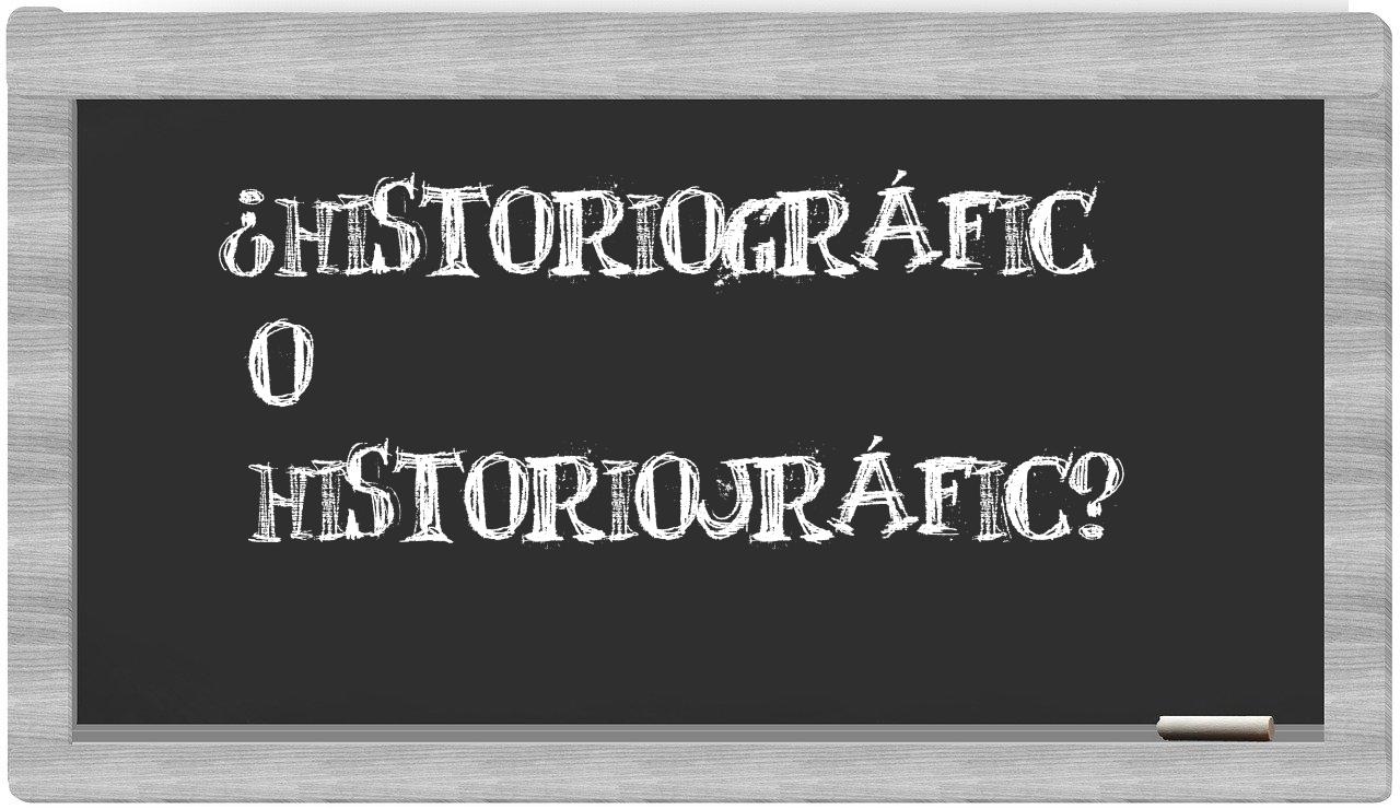 La mezcla de conceptos entre historiográfic y historiojráfic surge mayormente por la cercanía en su fonética. En prácticamente todos los acentos del español, ambas voces resuenan de manera casi idéntica, lo que puede inducir a creer que su escritura es también equivalente. No obstante, la manera adecuada de escribir cada término varía según su raíz etimológica y las normas concretas que rigen la escritura en español.