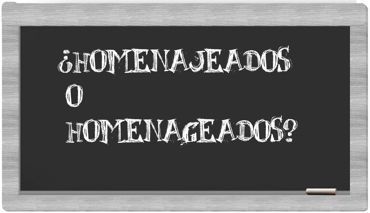 En la particular situación que se presenta entre los términos homenajeados y homenageados, no hay razón para titubear, pues únicamente homenajeados se encuentra adecuadamente redactada; por otro lado, homenageados no se halla registrada en el Diccionario de la Real Academia Española.