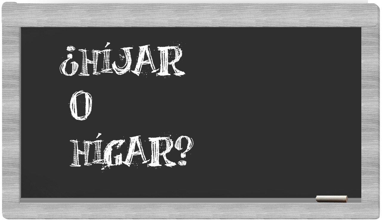 En este contexto particular, al relacionar los términos híjar y hígar, es fundamental que no generes confusión, porque únicamente híjar es la forma adecuada. Por otro lado, hígar no se encuentra registrada en el Diccionario de la Real Academia Española.