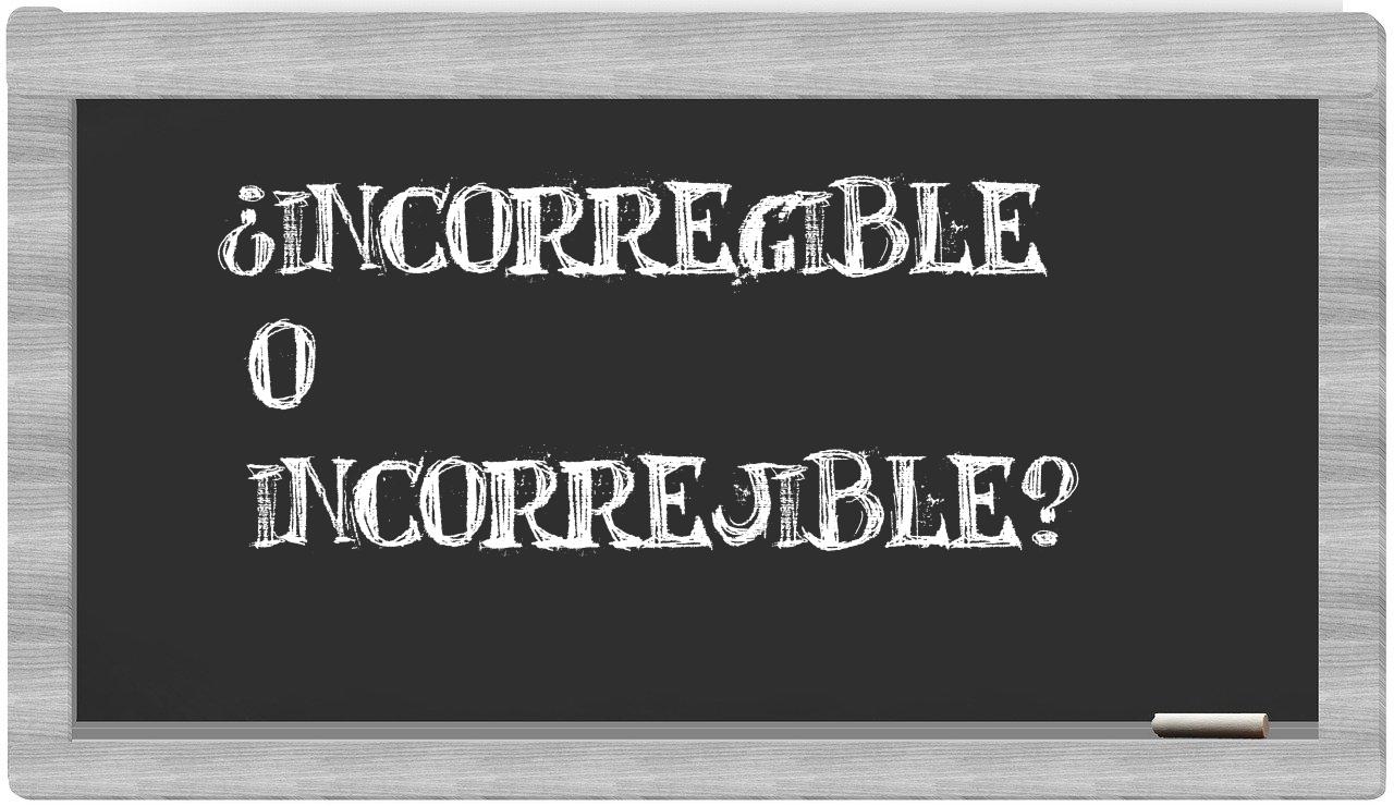 Cuando se habla de las expresiones incorregible y incorrejible, no debería haber lugar para la indecisión, pues es indiscutible que únicamente incorregible es la opción adecuadamente redactada. Por otro lado, incorrejible no tiene cabida en el Diccionario de la Real Academia Española.