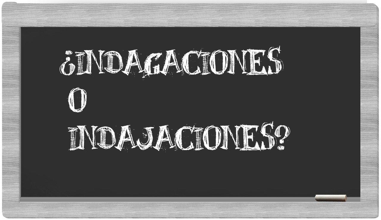 Cuando te encuentres en la situación de elegir entre indagaciones y indajaciones, ten la certeza de que solo indagaciones es la opción correcta, pues indajaciones no tiene cabida en el Diccionario de la Real Academia de la Lengua.