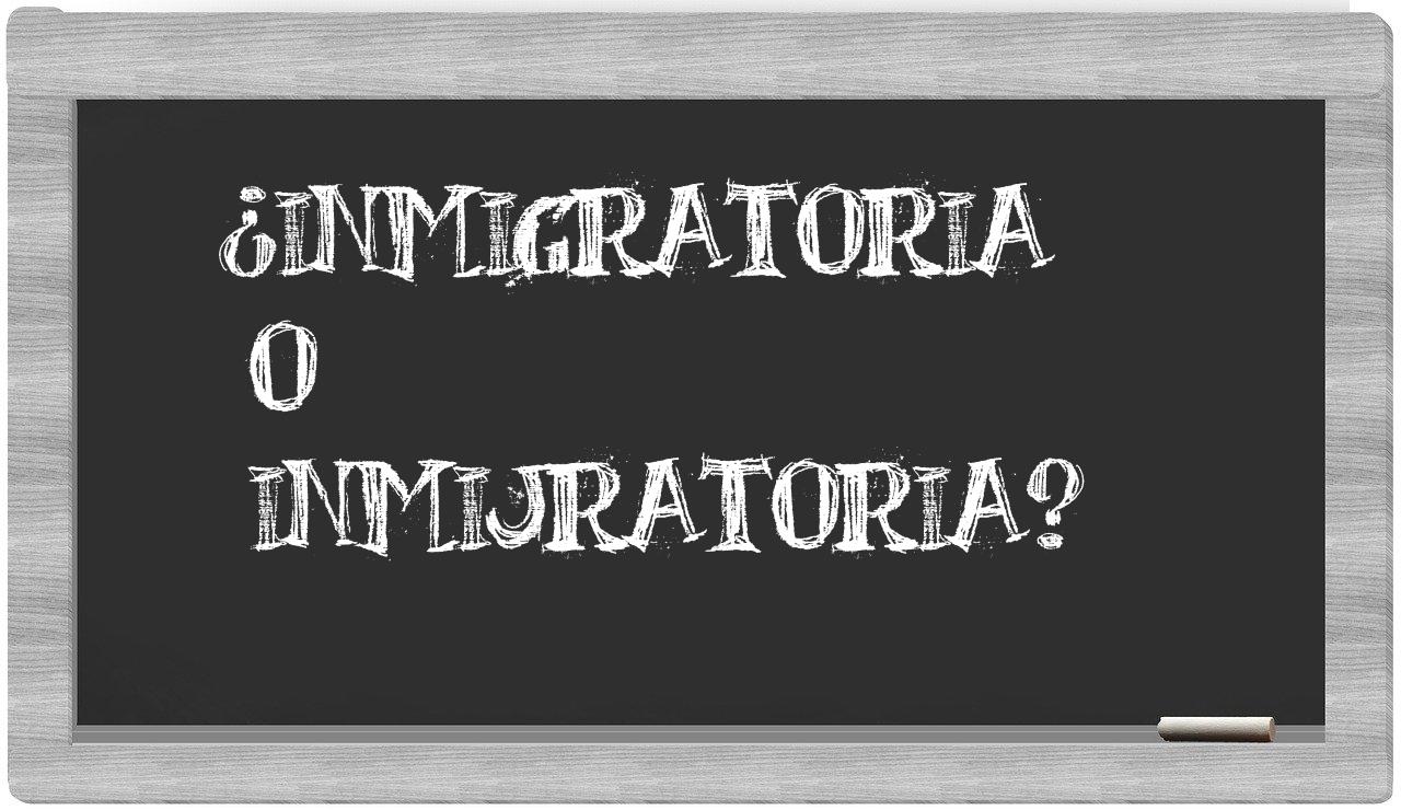 Con el fin de ayudarte a gravar en tu memoria la forma exacta de escribir inmigratoria, te presentamos la explicación que acerca de este término se encuentra en el diccionario: