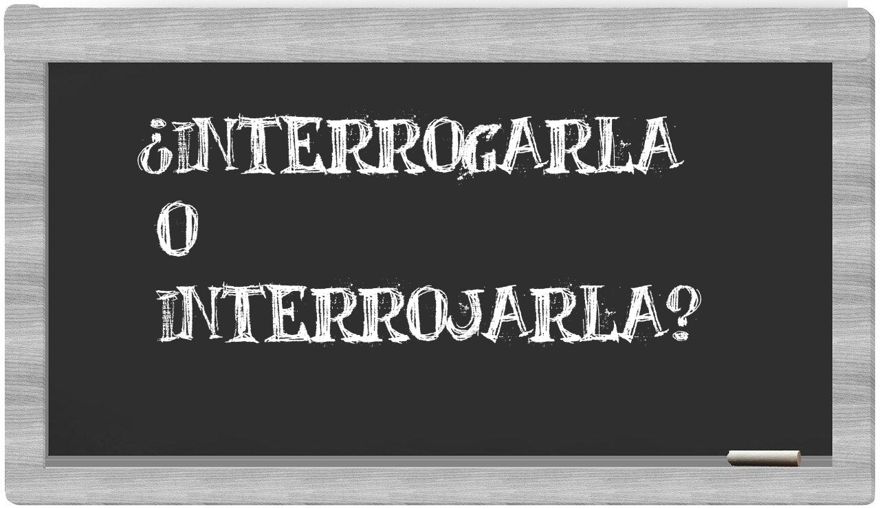 Referente a la distinción que debe hacerse entre interrogarla y interrojarla, no debes experimentar incertidumbre, puesto que únicamente interrogarla es la forma adecuada que figura en el Diccionario de la Real Academia Española, mientras que interrojarla carece de reconocimiento en dicho compendio lingüístico.